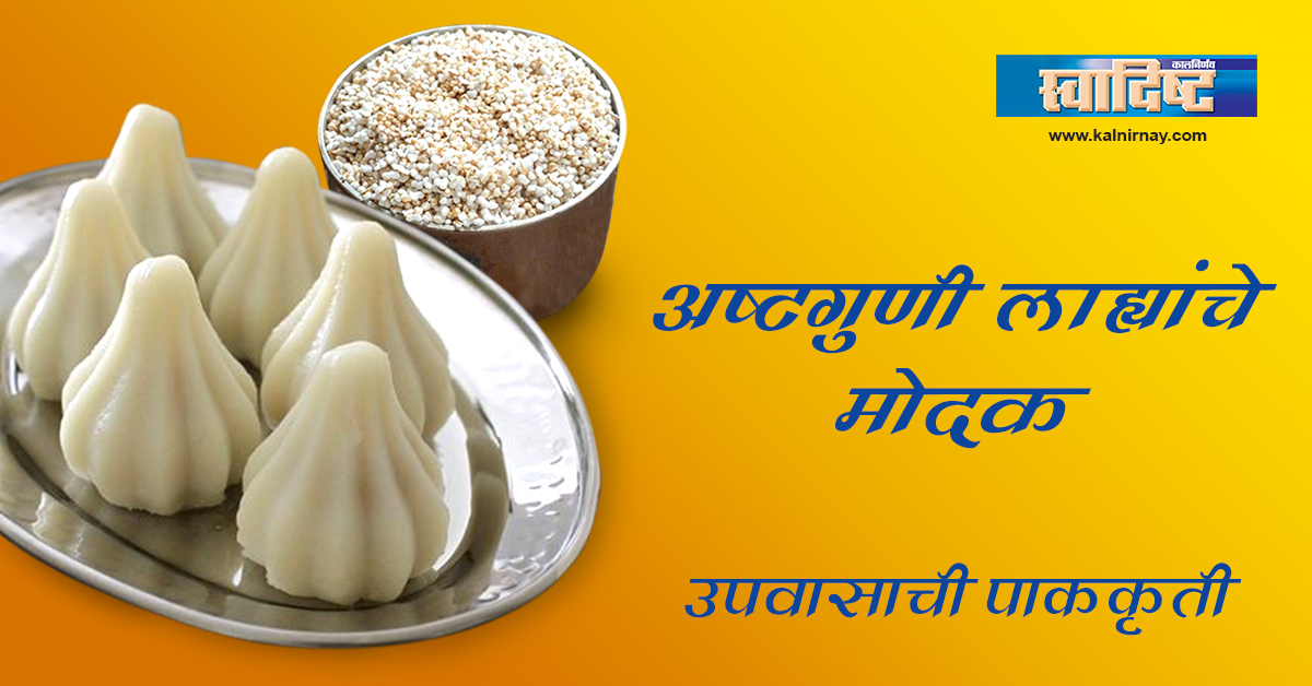 प्रथम कढईत तूप गरम करून घ्या. त्यात गूळ घाला म्हणजे गूळ वितळेल. गॅस मंद ठेवा. सगळ्या लाह्या वेगवेगळ्या भाजून मिक्सरमध्ये वेगवेगळ्या वाटा. नंतर बाऊलमध्ये एकत्र करा. वरील आठ प्रकारच्या वाटलेल्या लाह्यांचे मिश्रण वितळलेल्या गुळात घाला व परतून घ्या. गॅस मंदच ठेवा. त्यात ड्रायफ्रूटचे काप, खारीक पावडर घालून ढवळवा. नंतर वेलची पावडर, दूध पावडर घालून ढवळवा. गरम असतानाच साच्याने मोदक करा.