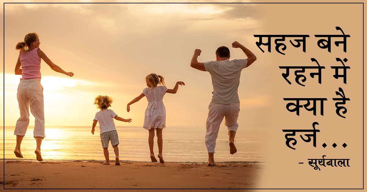 ‘अरे?’ यह मेरी तीसरी ‘अरे थी’ लेकिन इन दिनों तो हर लड़की, स्त्री के लिए बाहर जॉब करना उसकी पहली जरूरत है। आर्थिक दृष्टि से स्वावलंबी होने की दृष्टि से, स्वयं उसके आत्मसंतोष और शिक्षा की उपयोगिता के लिए भी –