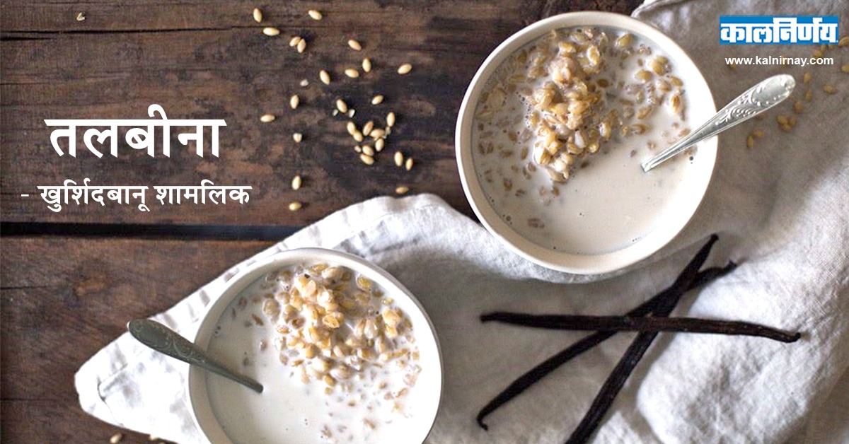 तलबीना बनविण्यासाठी लागणारे- साहित्य: १०० ग्रॅम बार्ली १ लिटर दूध ८ खजूर १ टेबलस्पून मध १ टीस्पून वेलदोडे पावडर ड्रायफ्रूट्स आवडीप्रमाणे (बदाम, अक्रोड, पिस्ता, काजू) कृती(तलबीना): बार्ली चार तास पाण्यात भिजत घाला. त्यानंतर मिक्सरमधून या बार्लीची भरड काढून घ्या म्हणजे ती लवकर शिजेल. दूध तापवत ठेवा. दुधाला उकळी आल्यावर त्यात बार्लीची भरड घाला आणि शिजायला […]