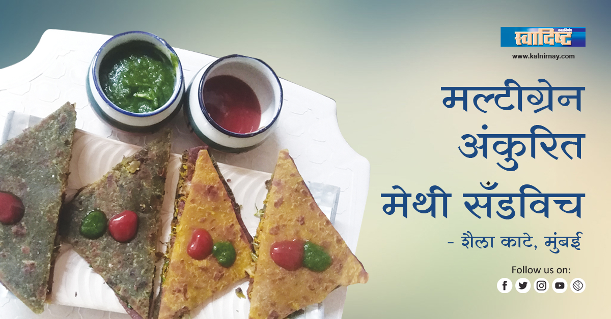 देसी हेल्दी सँडविच साहित्य: ११/२-२ वाट्या बाजरी, नाचणी तसेच राजगिरा किंवा वरीचे पीठ, मीठ. सारणासाठी: १ जुडी पालक, २ गावरान टोमॅटो, ८-१० लसूण पाकळ्या, २-३ मिरच्या, १ लहान चमचा दाण्याचे कूट, भरपूर कोथिंबीर, तेल / तूप किंवा बटर, जिरे, मीठ. कृती: सगळी पिठे एकत्र करून त्यात मीठ घाला. लागेल तसे गरम पाणी वापरून पीठ भिजवा. पीठ छान […]