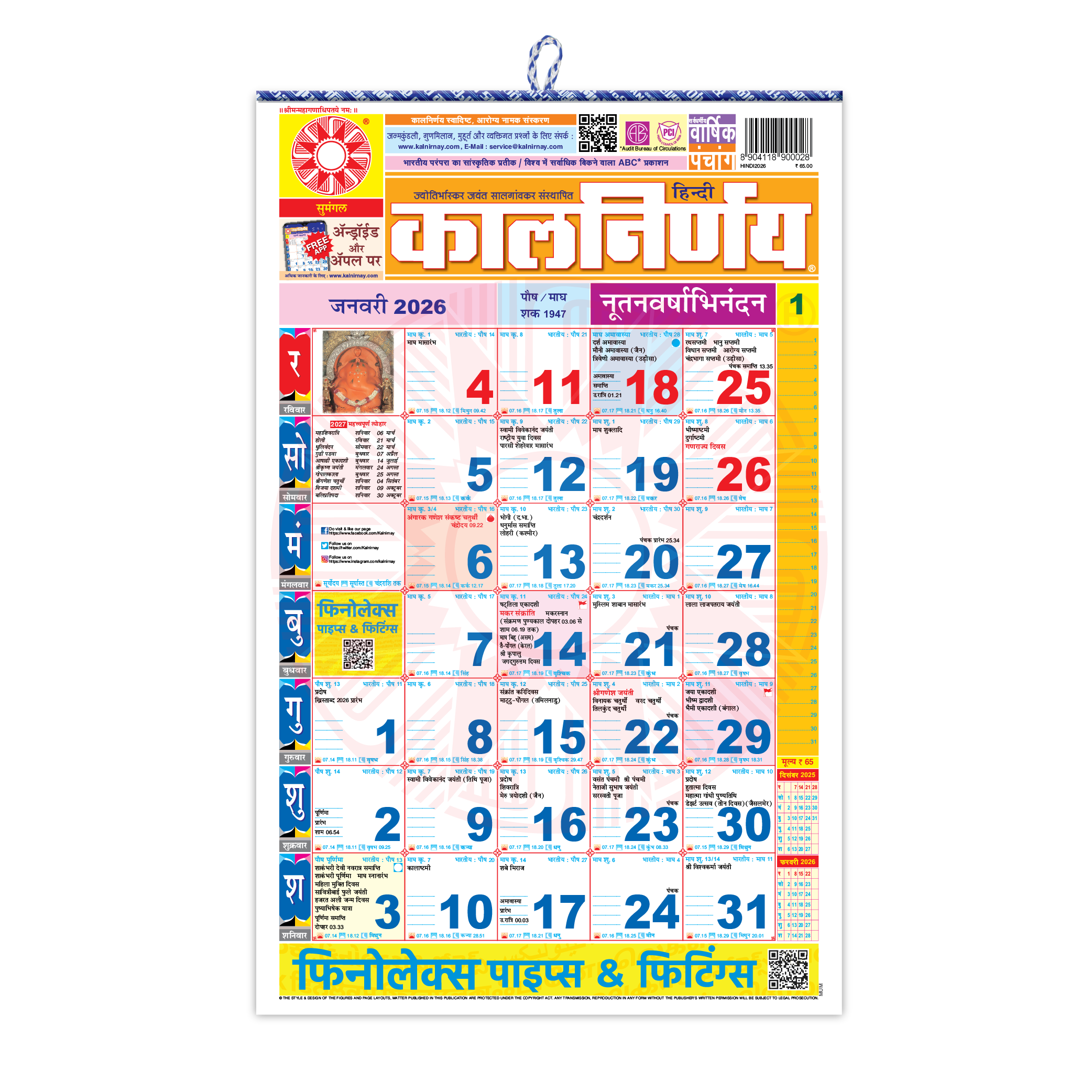 Kalnirnay Hindi Panchang Periodical 2026 is a collation of crucial information pertaining to religious and community festivals, events and national holidays in India. It includes the following: