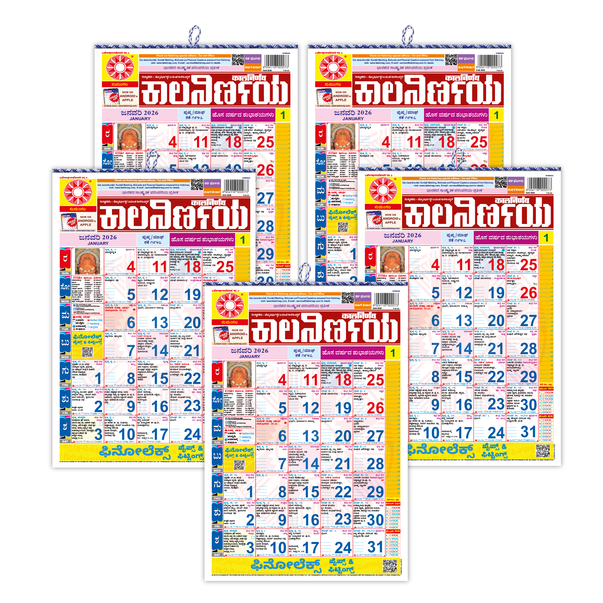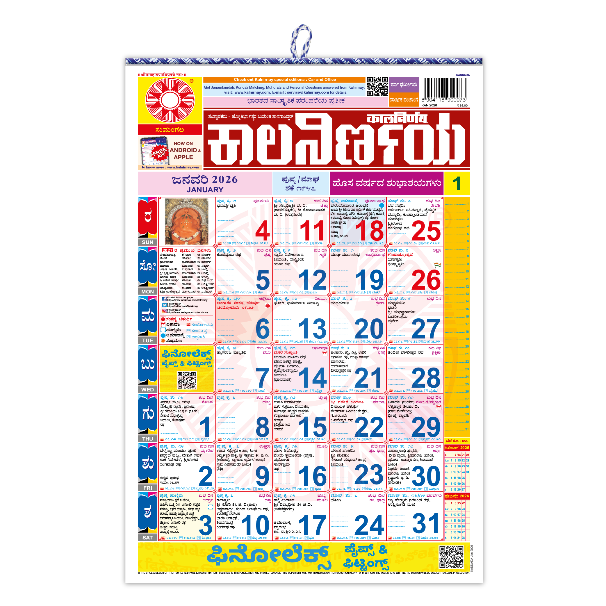 Kalnirnay Kannada Panchang Periodical 2026 is a collation of crucial information pertaining to religious and community festivals, events and national holidays in India. It includes the following: