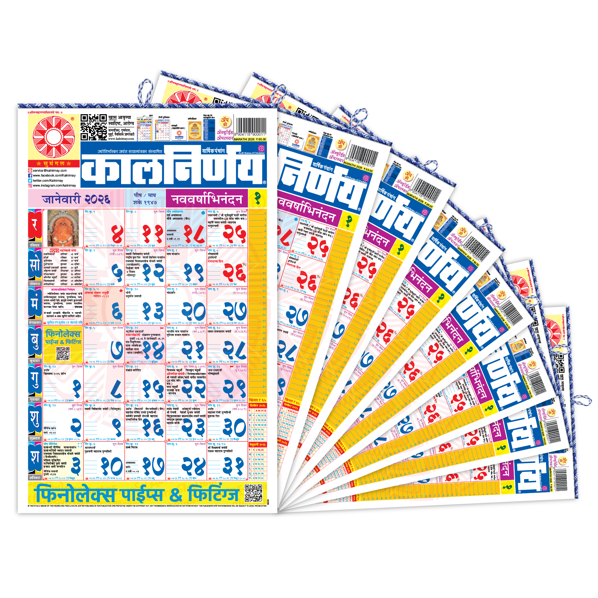 Kalnirnay Marathi Panchang Periodical 2026 is a collation of crucial information pertaining to religious and community festivals, events and national holidays in India. It includes the following: