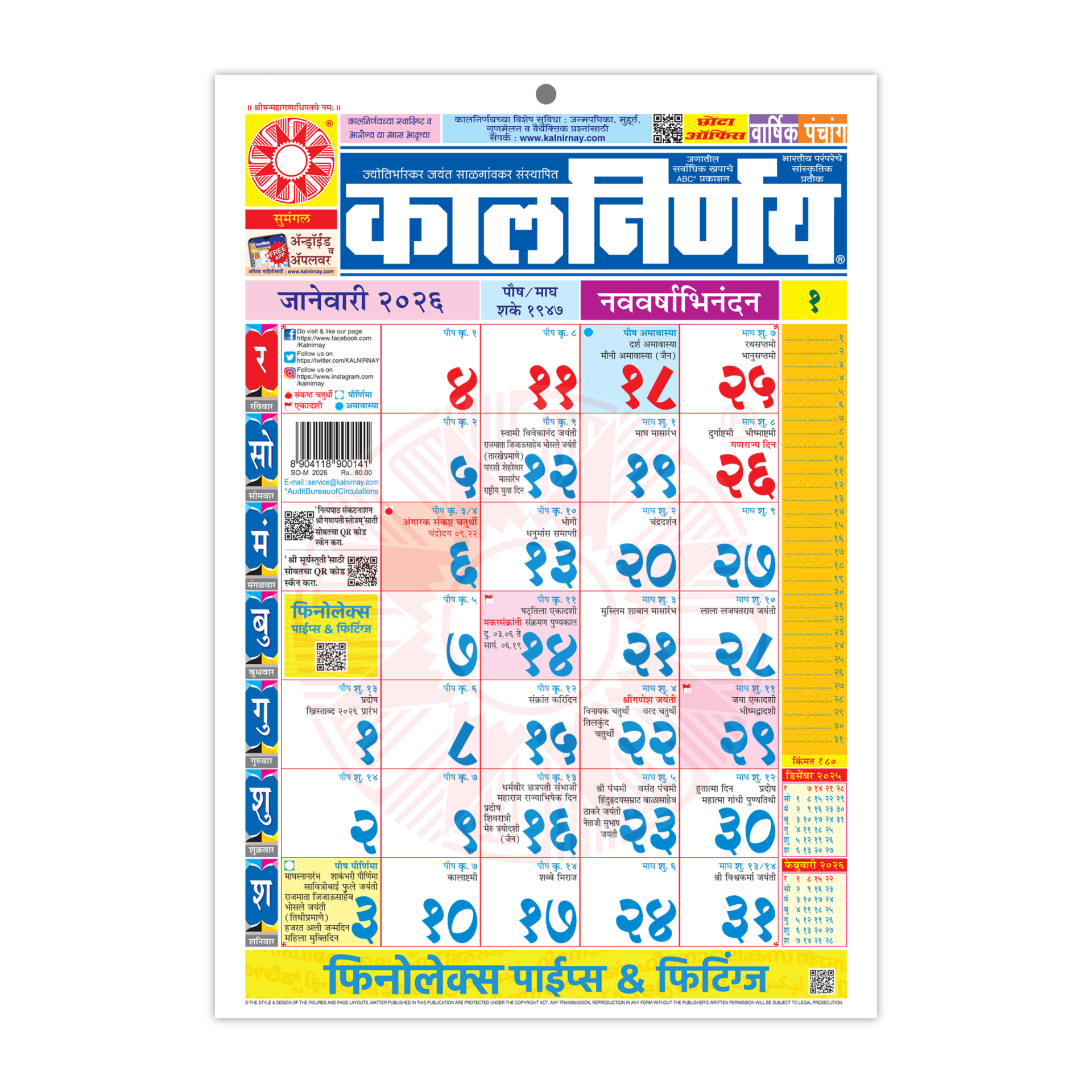 Get a Kalnirnay Marathi Small Office 2026 for your office to note down important milestones that occur on a daily basis. This small office edition is a handy product & comprises Get Kalnirnay For Your Offices & Be Up To Date With Information About Auspicious Days, Festivals, and Holidays. This small office edition gives you information about festivals and holidays, auspicious and inauspicious days. It also has some space on one side to write a note for a particular day. You can use this small office edition on your softboard. So get a Kalnirnay for your offices and keep yourself updated.x`