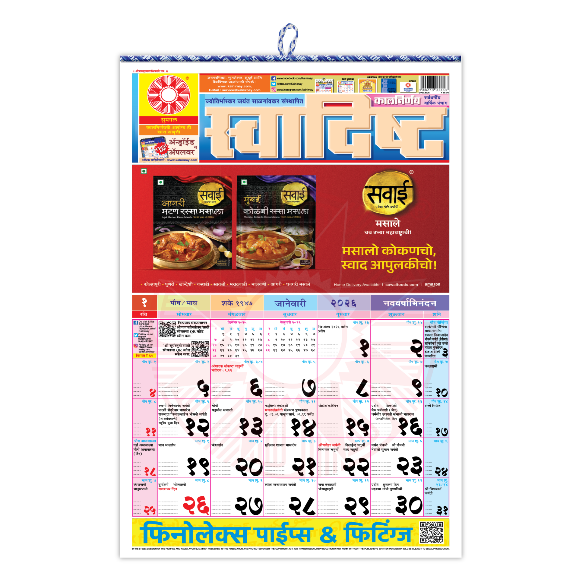Kalnirnay Swadishta 2026 is a special calmanac for readers who are interested in food and recipes. It is similar to the regular calmanac but the rear is a treasure trove of information on food. It has several recipes from different cuisines along with interesting tips on cooking and food preservation and is a treat for people who love to cook.